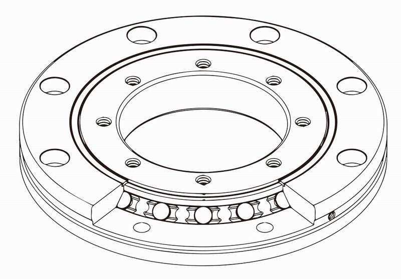 由于外圈和內(nèi)圈都有安裝孔,安裝時不需要固定法蘭和支撐座。另外,由于外圈和內(nèi)圈均為整體結(jié)構(gòu),安裝對性能幾乎沒有影響,因此能夠獲得穩(wěn)定的旋轉(zhuǎn)精度和扭矩。適用于外圈和內(nèi)圈旋轉(zhuǎn)的場合。